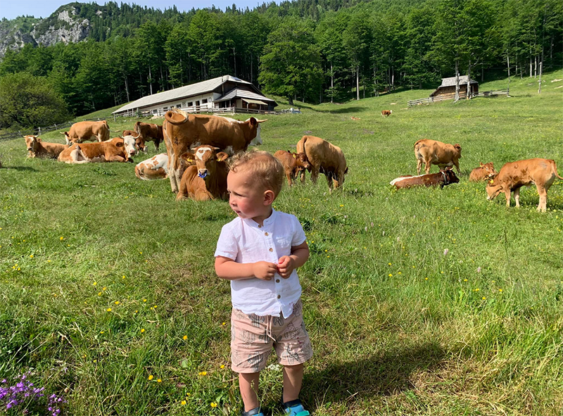 Vsako poletje naše krave odpeljemo na pašo na Veliko planino, kjer uživajo v sveži travi na prostem. Tam se pasejo med travniki, cvetočimi rožami in na svežem gorskem zraku. Ta način pašne reje ne zagotavlja le bolj kakovostnega mleka, ampak tudi srečo in dobro počutje živali.